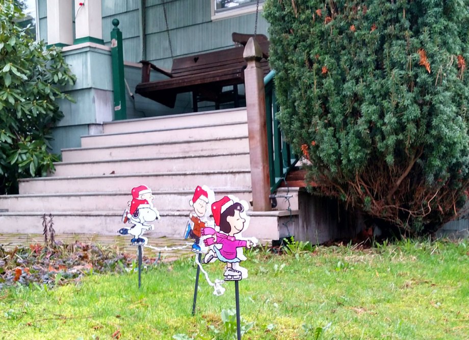 Peanuts Christmas Lights in a lawn in NE Portland.